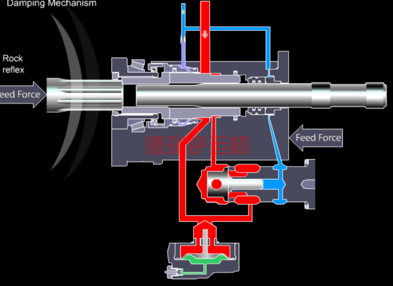 0338凿岩机具有双缓冲系统,穿投性高。具有防空打、冲击功率自动调节、二级防卡钻,可实现低推低冲,高推高冲,无推不冲,"回转﹣推进﹣冲击"等联动功能,使凿岩作业更连续,生产效率更高,在特殊地层(如溶洞,夹层等)凿岩更适应,有效保护凿岩机和钻具,经济效益更好;